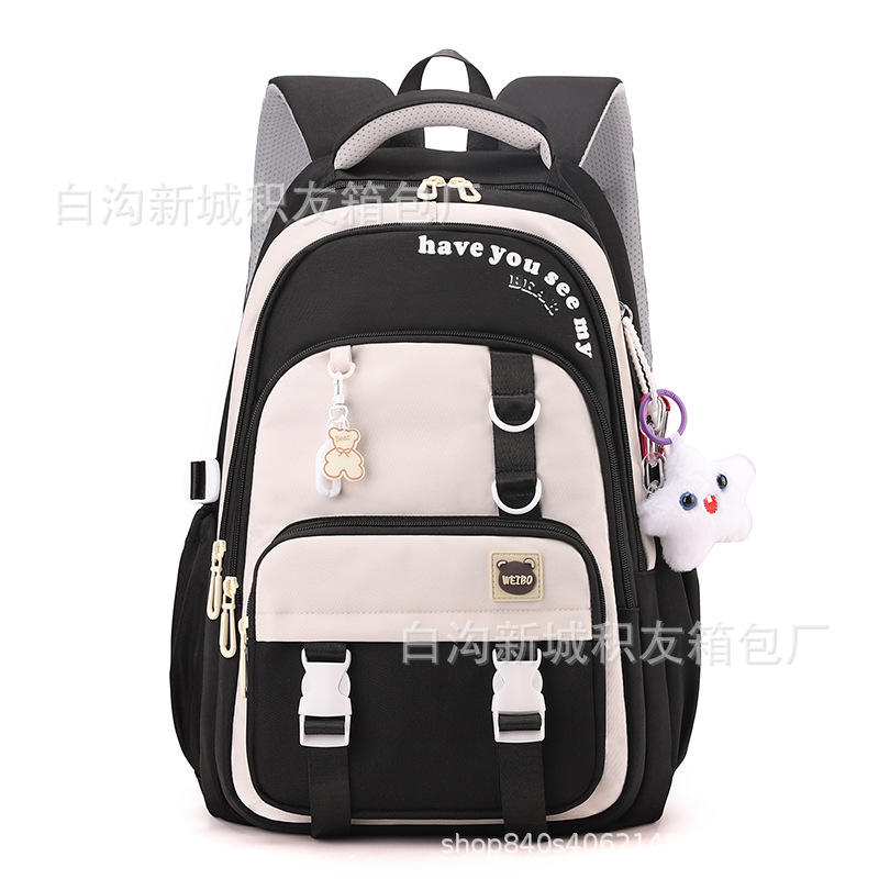 Student Backpack 15 Inches Color Blocking Contrasting Stitching Interior Zipper Pocket For School Education Unisex