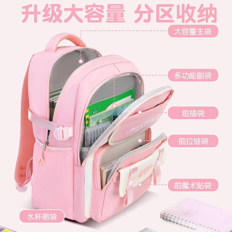 Student Backpack 15 Inches Color Blocking Large Capacity School Education Unisex Soft Handle Interior Zipper Pocket