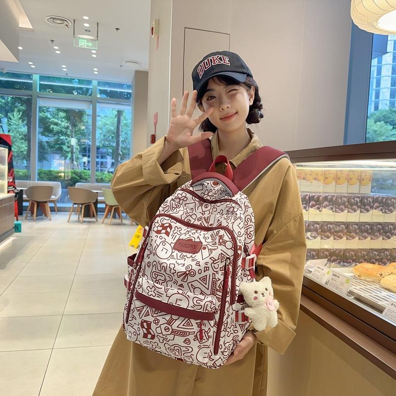 Student Backpack Graffiti Pattern 18 In Large Capacity School Bag For Girls High School Junior High Education Use