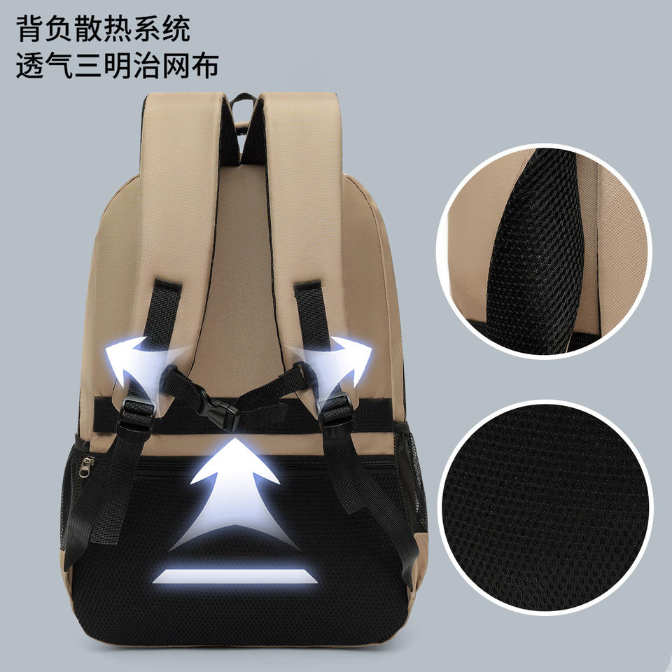 Student Backpack Large Capacity Durable Thickened Khaki Breathable Mesh Back Support For School Travel 16 Inch Laptop