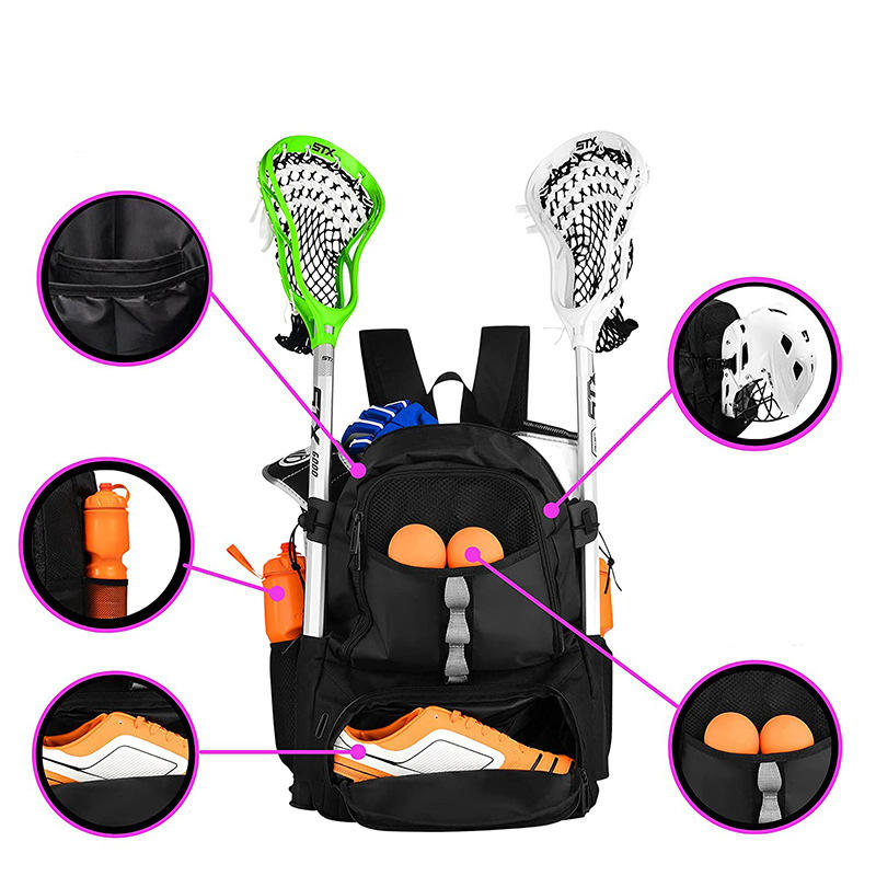 Student Large Field Hockey Bag Lacrosse Backpack Bag with Shoes Compartment Lacrosse Equipment Bag with High Quality