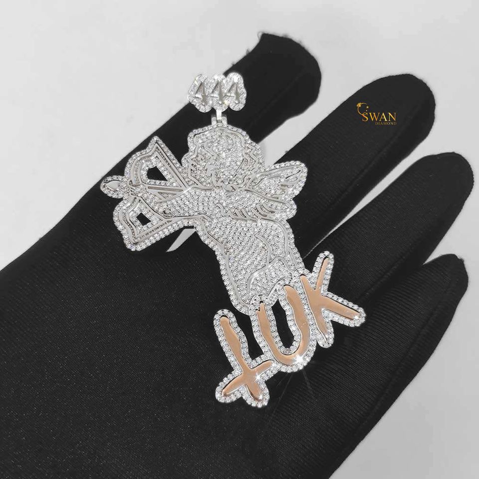 Stunning 925 Sterling Silver Rhodium Moissanite 444 Angel Cupid Custom Pendant Fully Iced Hip Hop Luxury Gift Jewelry Statement
