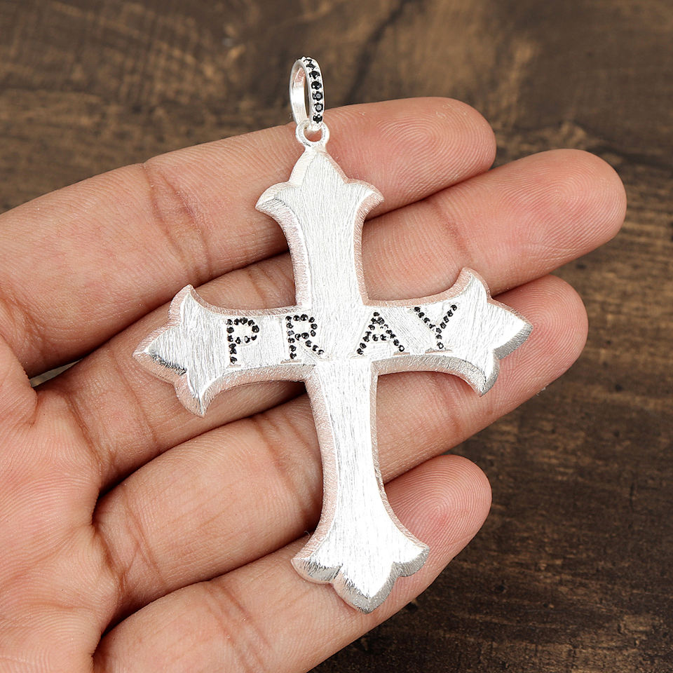 Stunning 925 Sterling Silver Unisex Religious Holy Cross Pendant Fine Pendants Charms Black Spinel Gemstone Diamond Charm
