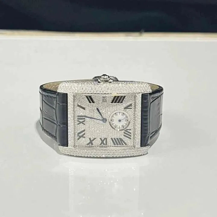 Stunning Baguette Fancy Dial Round Cut Full Iced Out Round Moissanite Watch With Classic Date Dial and Roman Numerals Features