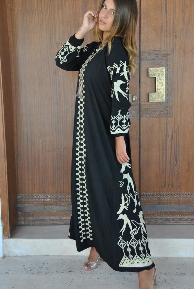 Stunning Beautiful Ukrainian Traditional Linen Dress Black High Quality Long Sleeve Casual Hand Embroidery Natural Waistline