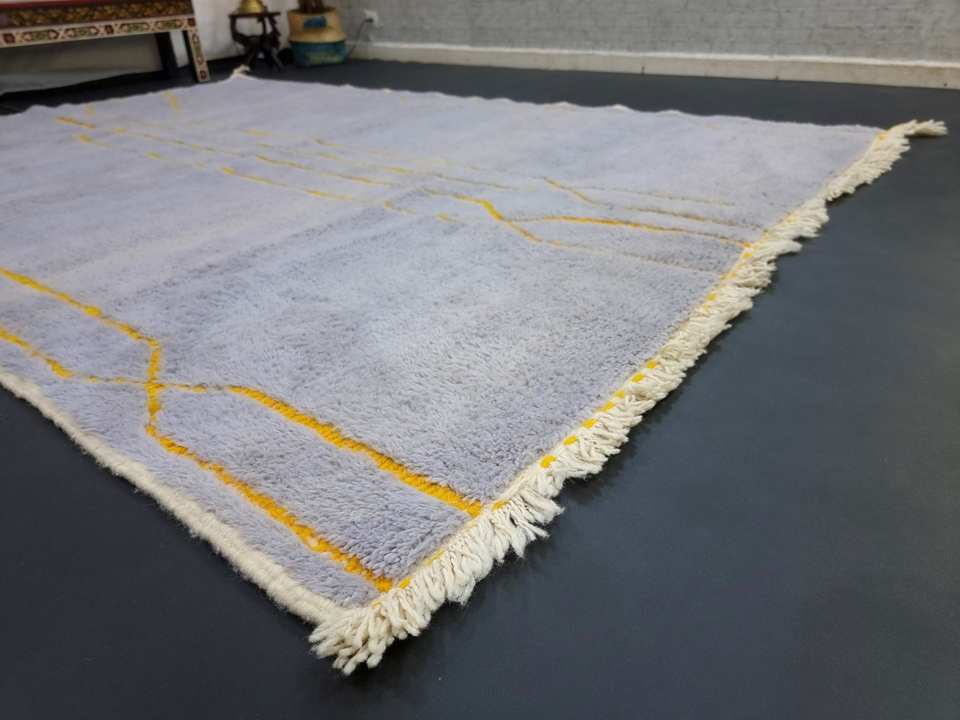 Stunning Beniourain Moroccan Custom Carpet Handmade Heather Purple Mustard Striped-Tufted Sheep Wool Area Rug Abstract Pattern
