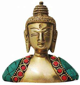 Stunning Buddha Bust Statue with Golden Finish and Green Stone Pattern Ideal for Home Decor Meditation Corners Yoga Rooms