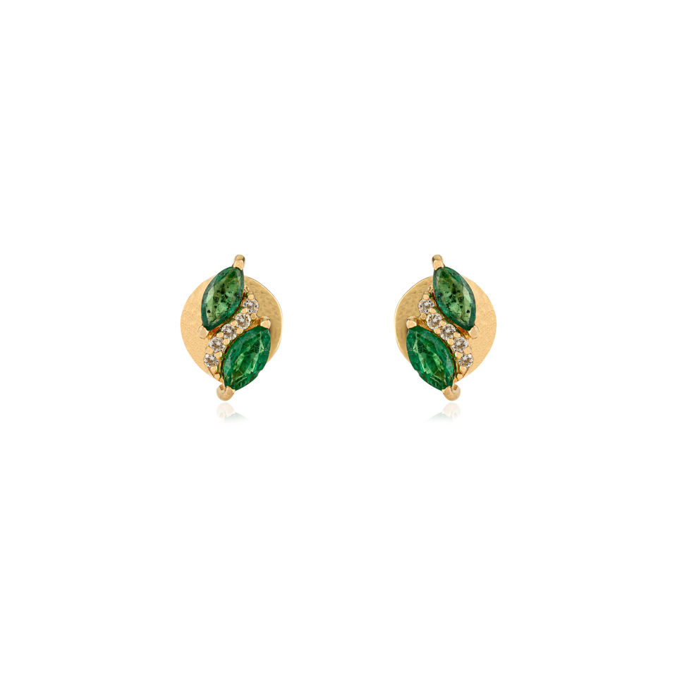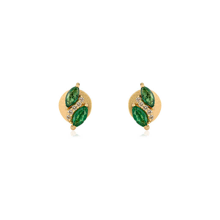 Stunning Classic Simple Design Emerald & Diamond May Birthstone Push Back Minimal Stud Earrings 14K Yellow Gold Everyday Jewelry