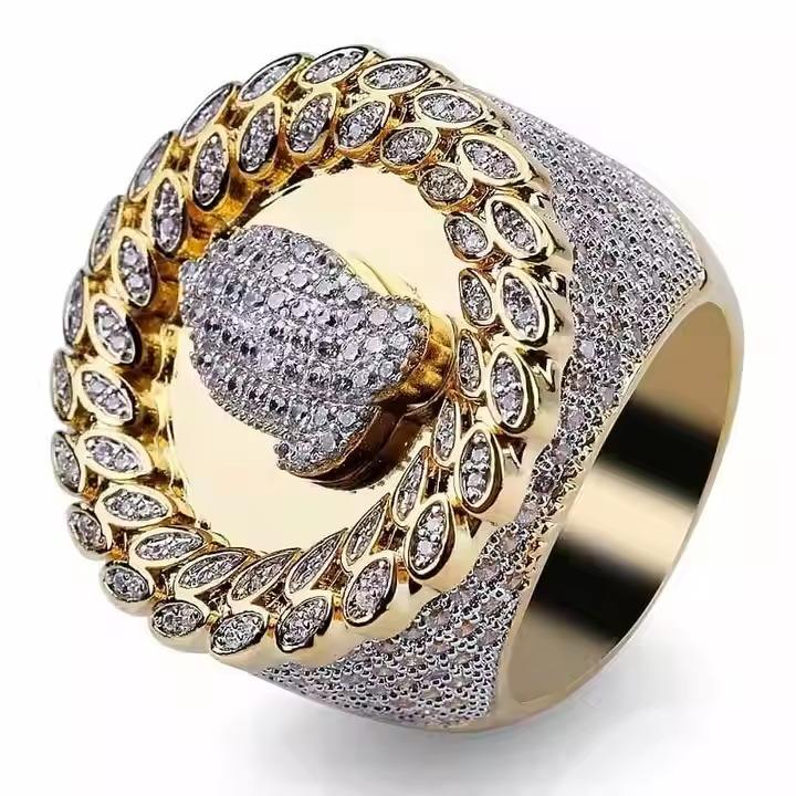 Stunning Fully Iced Out Hip Hop Christian Style Natural Lab Round Diamond Jesus Cross Ring in 18k 22k Yellow Gold Shop