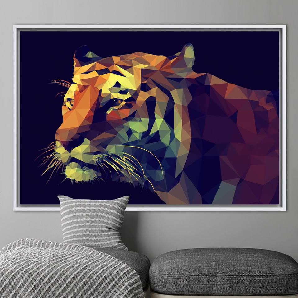 Stunning Geometric Animal Art Canvas: Abstract Tiger Print,1P:White Framed
