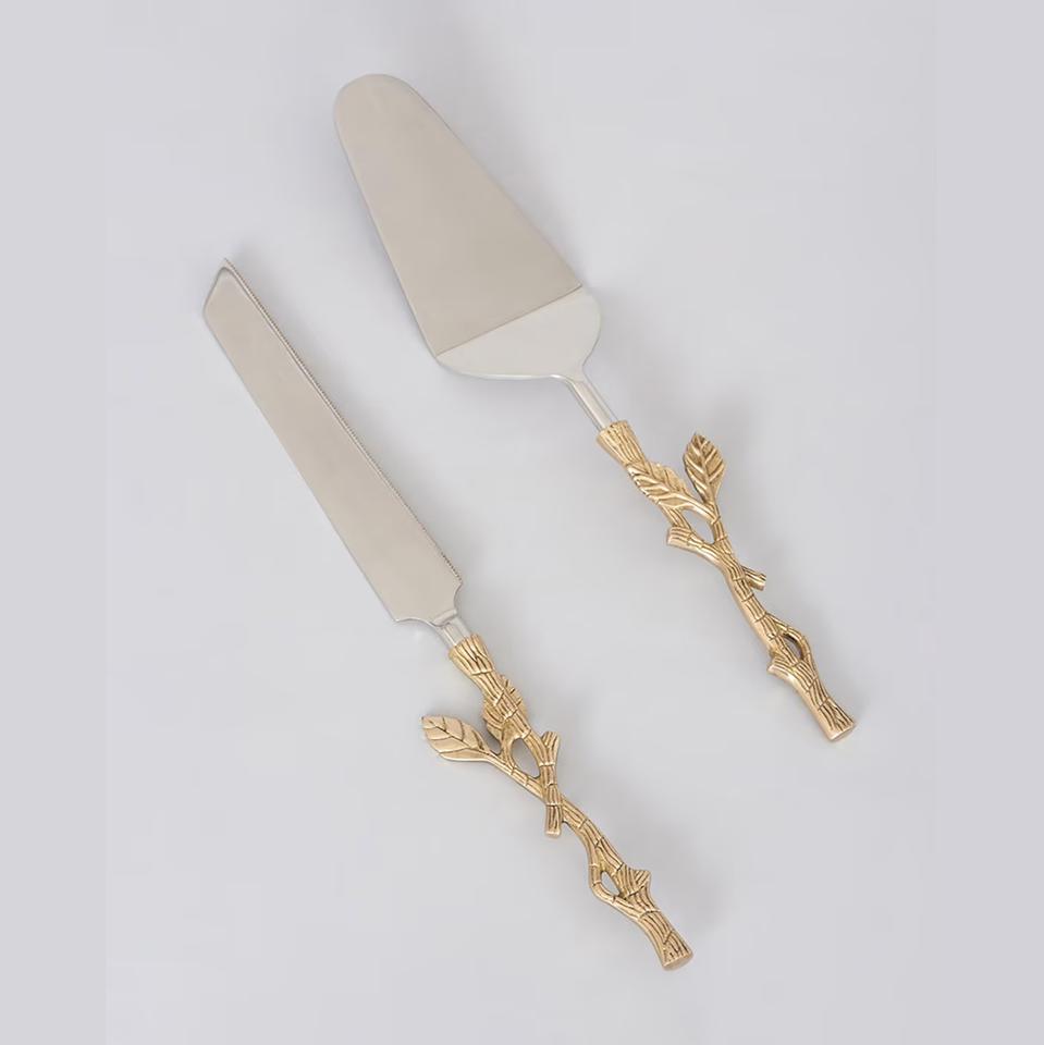 Stunning Hammered Dessert Pie Pizza Pastry Serving Spatula & Knife Set, Gold Finished Stainless Steel Cake Server for Restaurant