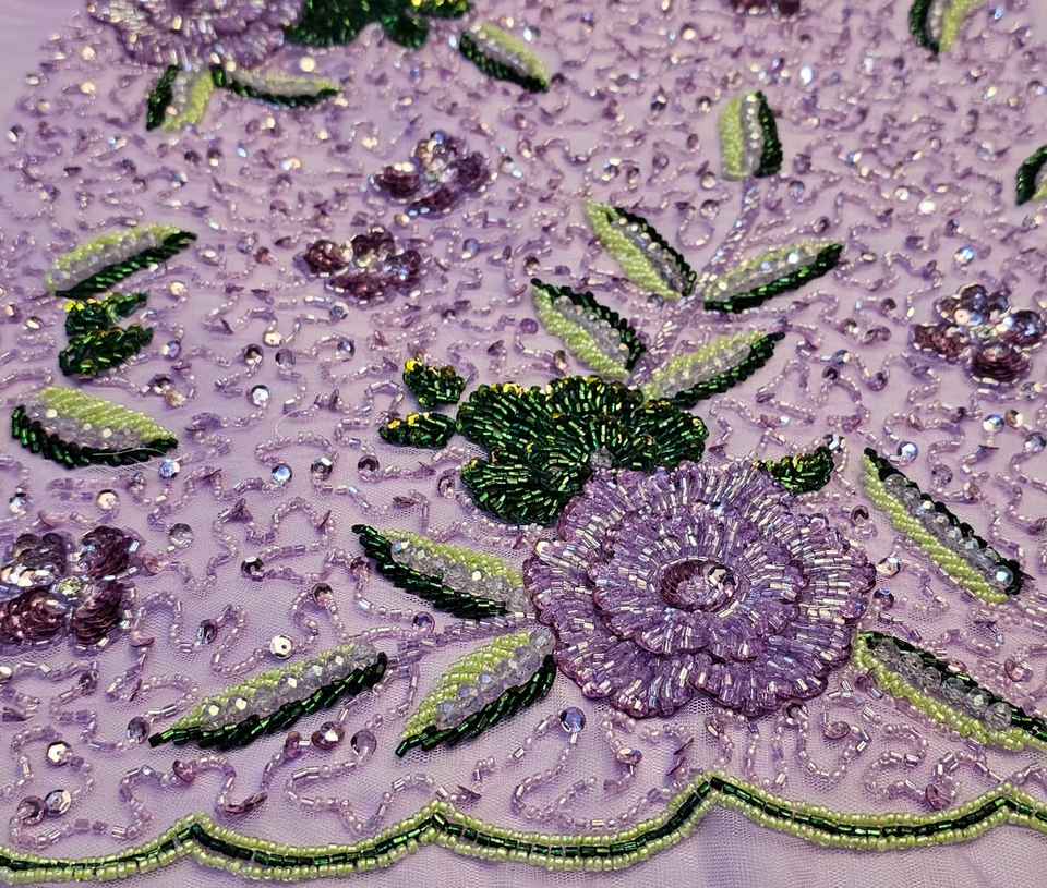 Stunning Heavy Embellished Fabric with Beaded Flowers and Sequin Accents on Soft Net Rich Decorative Fabric for Dresses