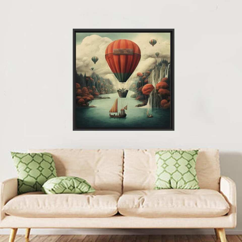Stunning Hot Air Balloons Printed Canvas Wall Art, Elegant Wall Decor,Black Framed