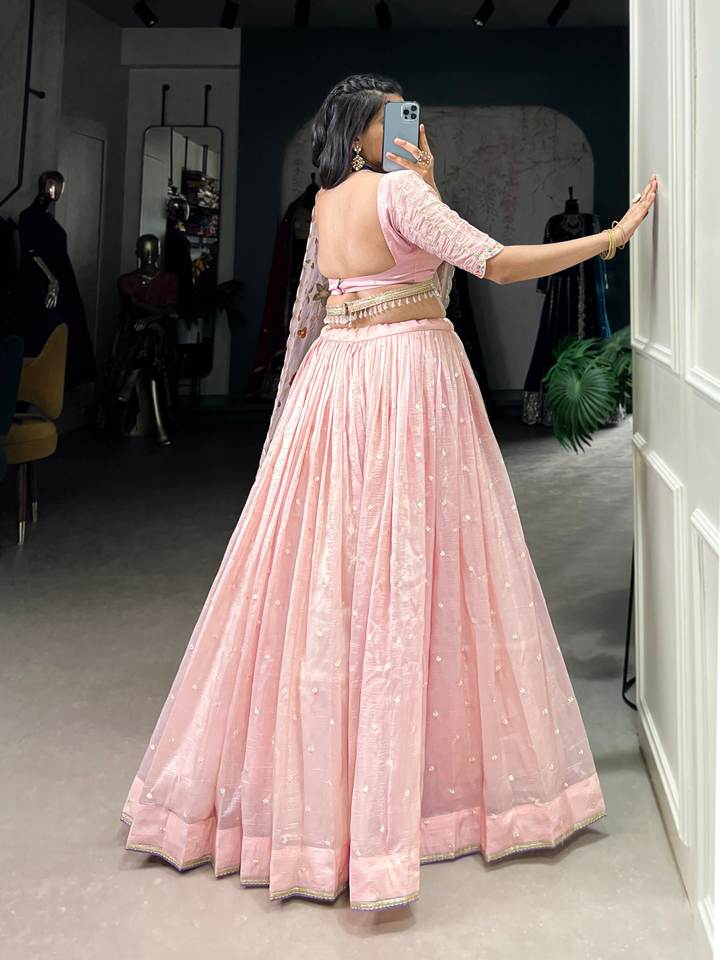 Stunning Light Pink Thread Embroidered Designer Lehenga Choli
