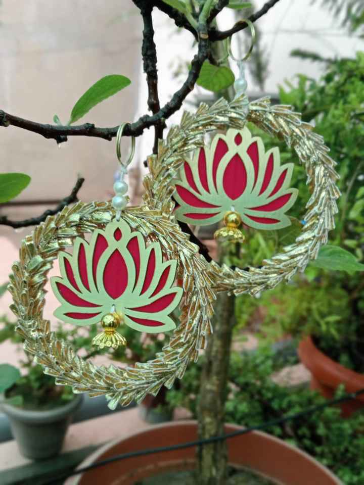 pearl beads, lotus made of mdf, thread, metal ringmaterial