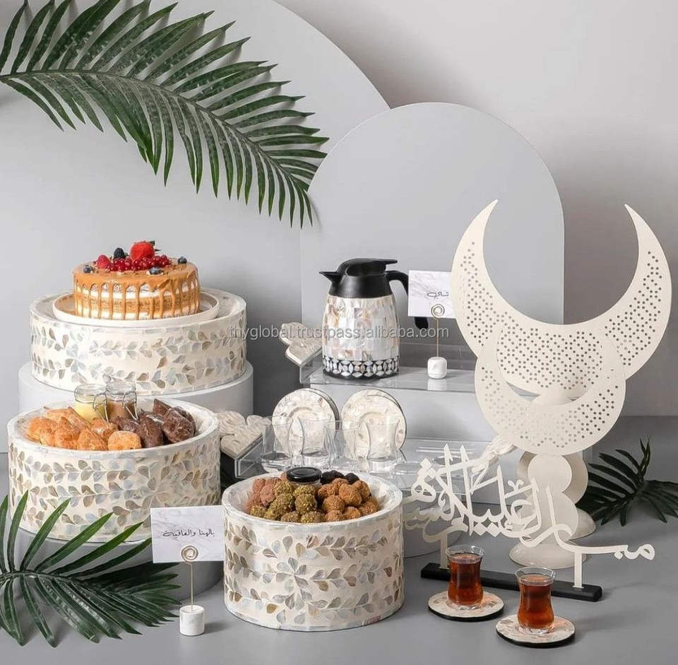 Stunning Mother Pearl Seashell Cake Stand Artisan Floral Inlay Eco Friendly Dishwasher Microwave Safe for Luxury Ramadan Gifting
