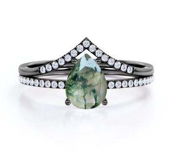Stunning Pear Shape Moss Agate Sterling Silver Ring Natural Gemstone Customized Jewelry for Women Unique Design
