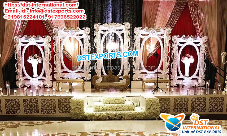 Stunning Reception Night Stage Backdrop Frames Unique Wedding Backdrop Fiber Panel Stage Modern Indian Wedding Stage Frame