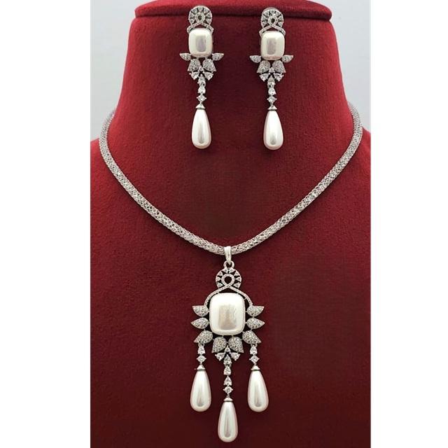 Stunning Silver Finish Premium Quality Stones Look Pendent Chain Set with Earrings With for Parties Wear Collection For Women