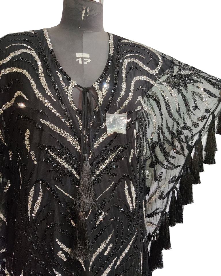 Description:Pretty Antique gold hand embroidery with handbeaded antiqe fringes