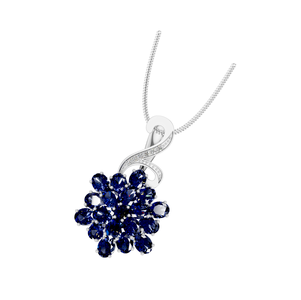 Style:Floral Pendant with Sapphire Cluster & Natural Diamonds