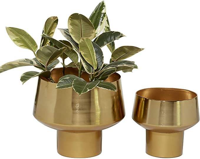 Sturdy Golden Metal Decorative Garden Planter Perfect For Holding Large Plants Or Small Trees Adding Character To Entryways