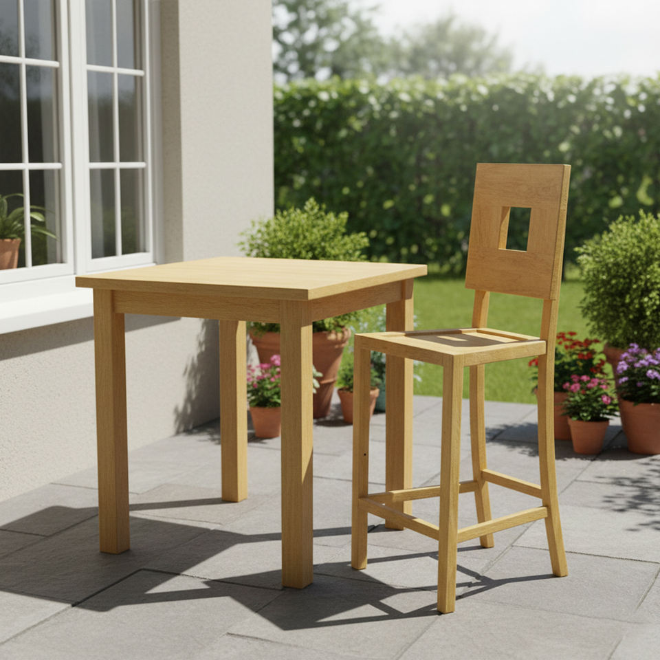 Sturdy Indonesian Teak Wood Chic Square Cube Back Minimalist Bar Chair Wooden Chair for Indoor Garden Pub and Bistro Furniture