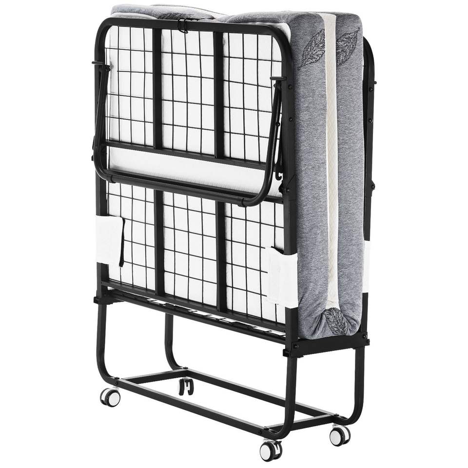 Sturdy Metal Frame Rollaway Bed 38 X 75 Twin Size Folding Bed with Memory Foam Mattress Portable Roll Away Bed for Adults Guests