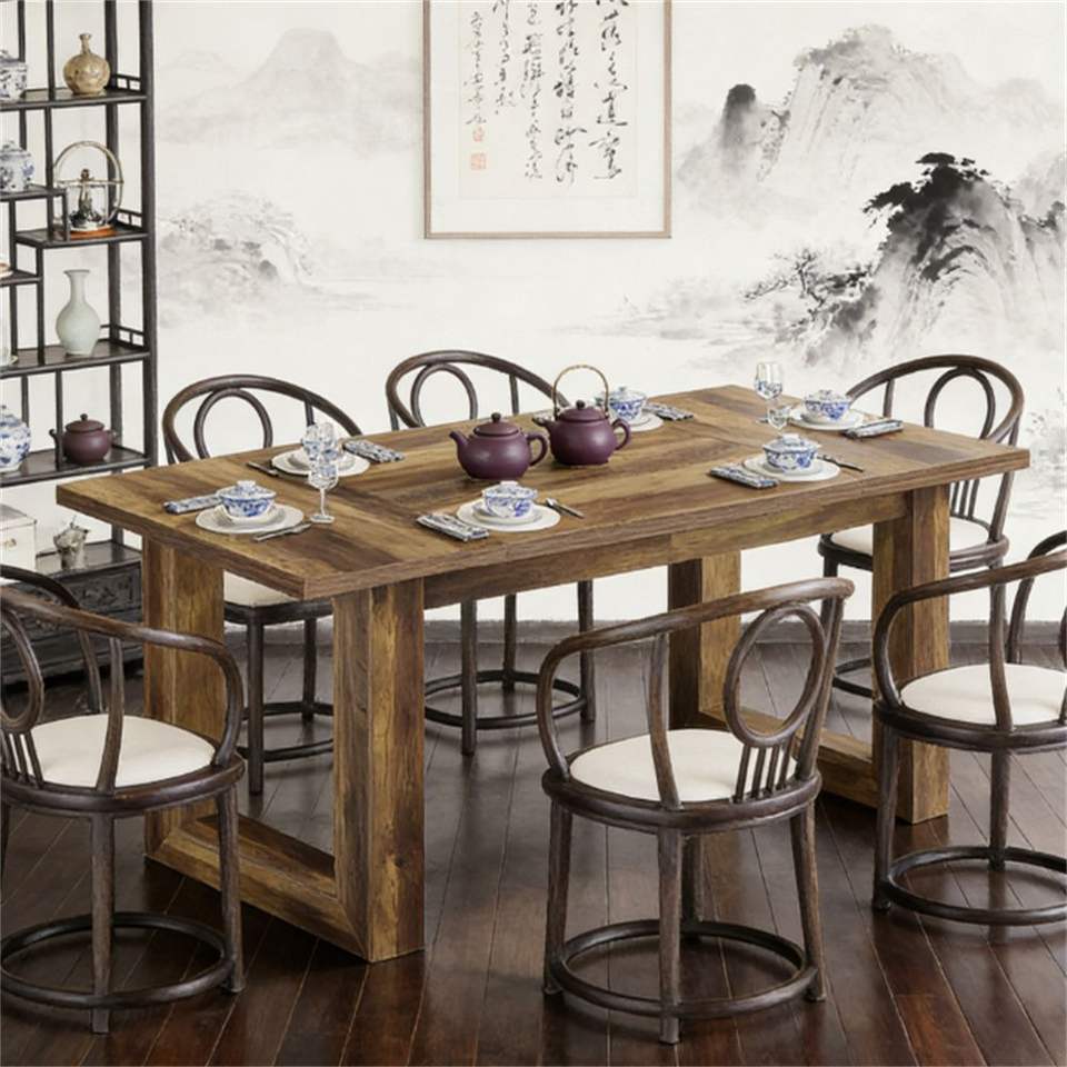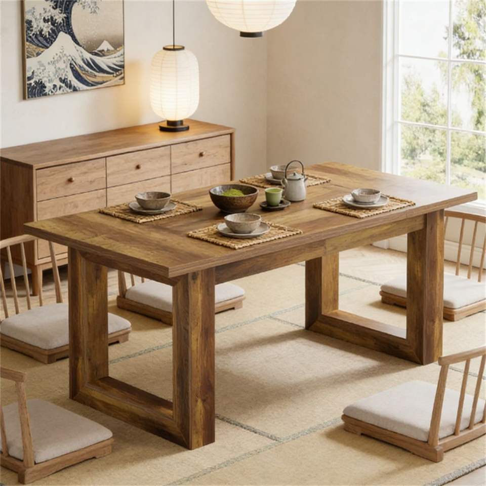 Sturdy Wooden Square Base Rectangular Dining Table for Kitchen Durable Wooden Dining Table with Square Base