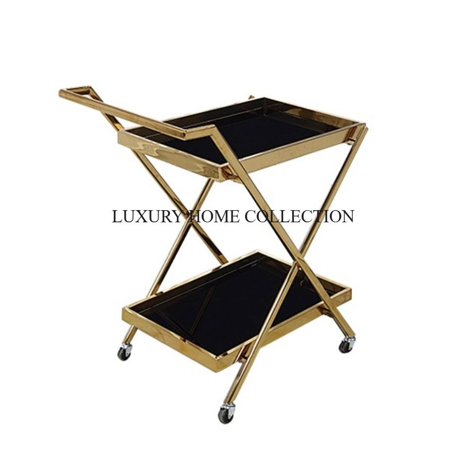 Sturdy and Lightweight Aluminum Metal Serving Trolley Table with Practical Shelving for Versatile Serving Purposes