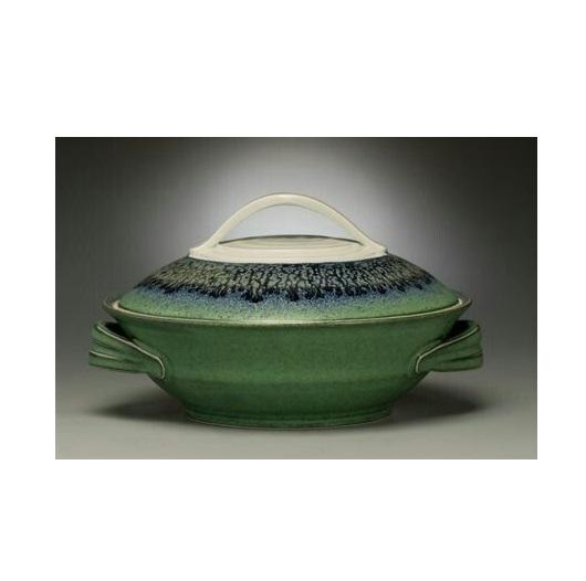 Sturdy clay ceramic hot pot with smooth enamel coating and functional handles great for healthy cooking methods