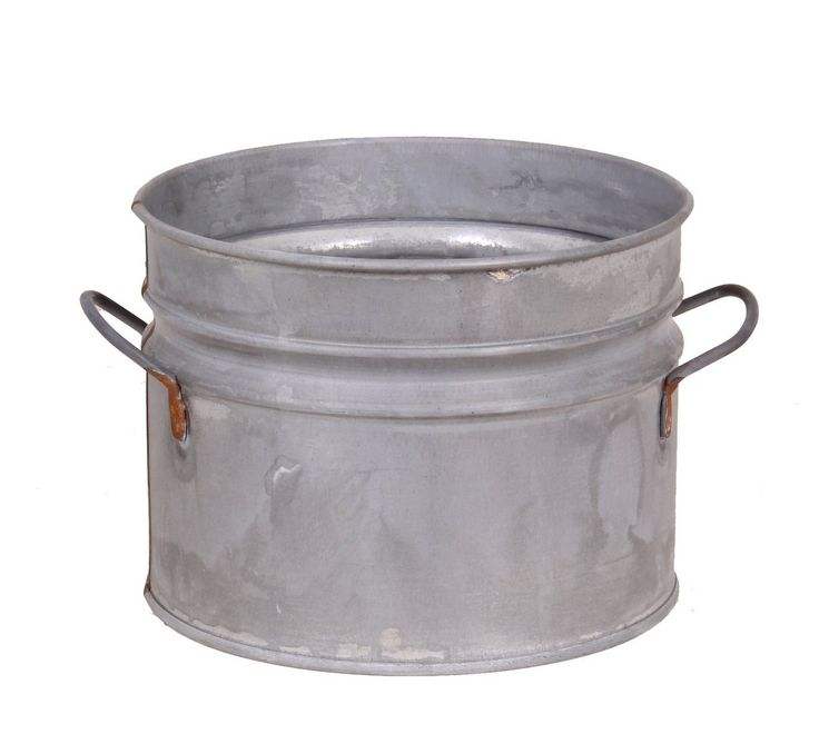Sturdy galvanized metal planter bucket featuring detailed outhouse design for classic rustic farmhouse garden lovers