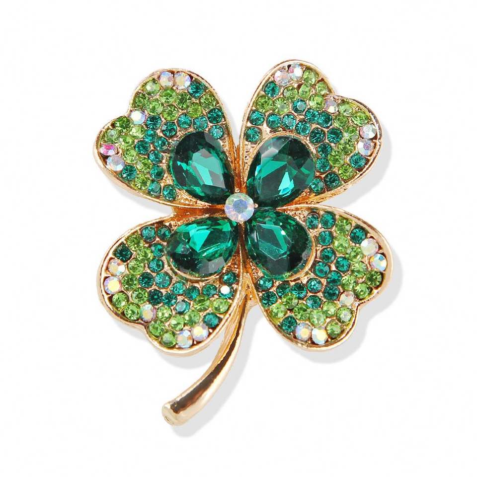 Style Alloy Rhinestone Four-Leaf Clover Brooch Fashion Exquisite Lady Suit Cardigan Pin Jewelry