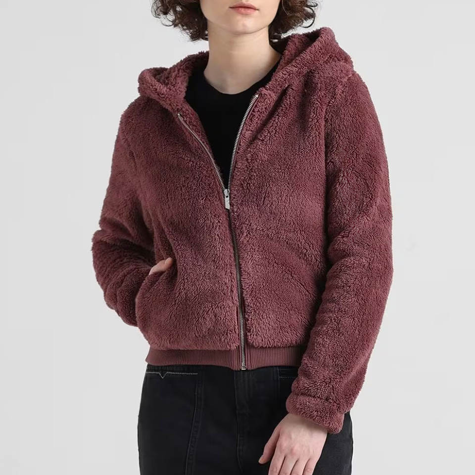 Premium Women's Sherpa Fleece Jacket Breathable Printed Style with Warm Nylon Lining and Pocket Factory Direct Selling