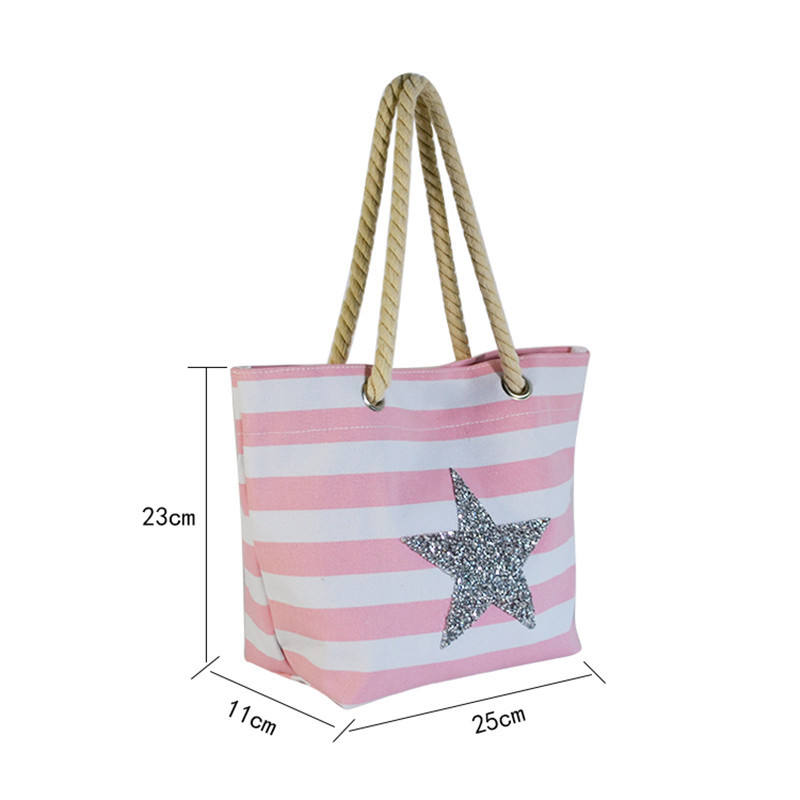 Style Striped Pattern lady's Tote Bags Women Summer Canvas Tote Beach Bags with Cotton Rope Handles
