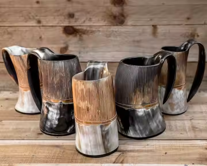 Style Viking Drinking Horn Genuine Ox Drinking Buffalo Viking Mug leak proof lid,vacuum insulation,coffee mug by crescent crafts