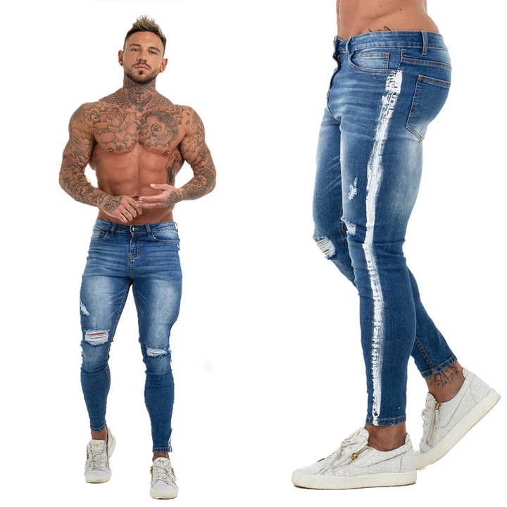 Men's Fashion Jeans Personalized Letter Printing 100% Cotton Japan Style Elastic Washed Technique Breathable Stylish