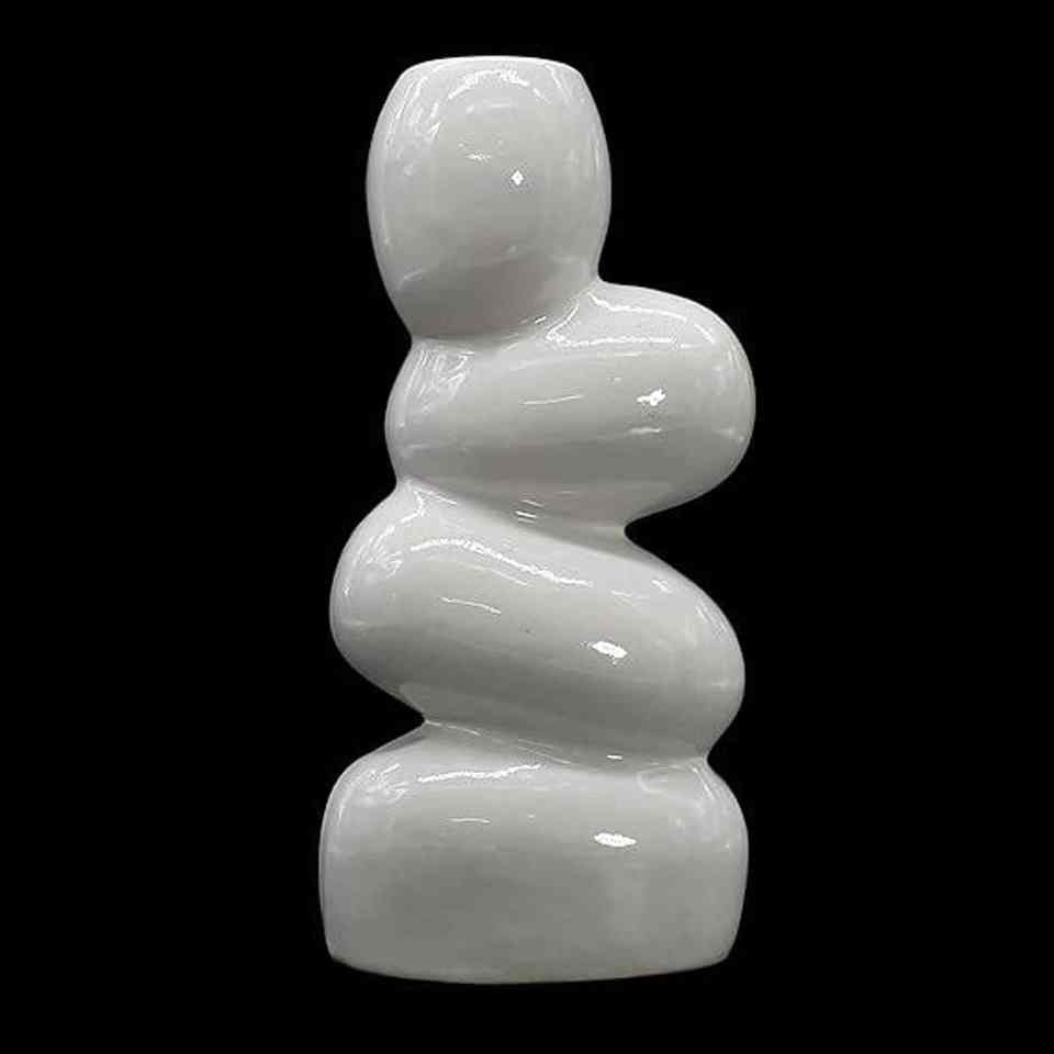 Styling Modern handmade ceramic craft with abstract stacked Minimalist white pottery decor with greenery for home table