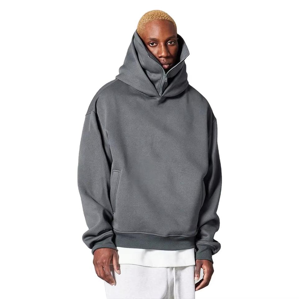 Stylish 100% Cotton Men's Hoodie with Balaclava Design Double Hood Zip Drop Shoulder Sweatshirt Customizable for Cold Winter