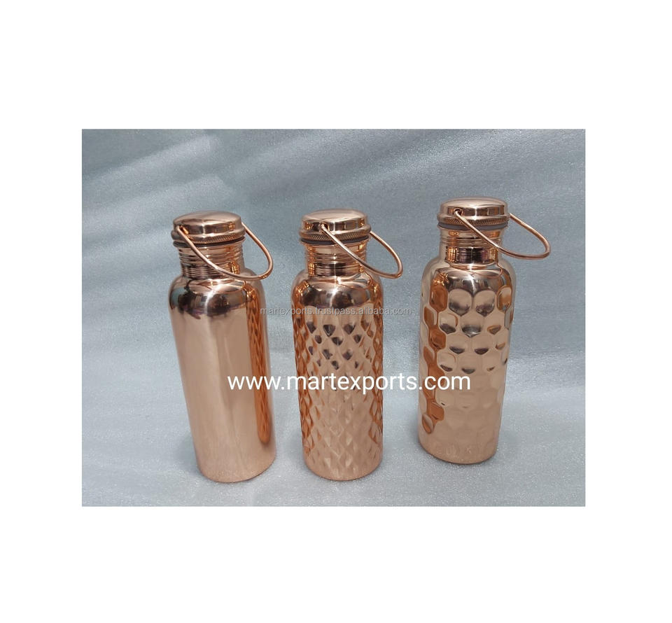 Stylish 1L Home Decor Copper Water Bottle High Quality Indian Handicraft Unique Design Durable Cap Eco-Friendly Applicable