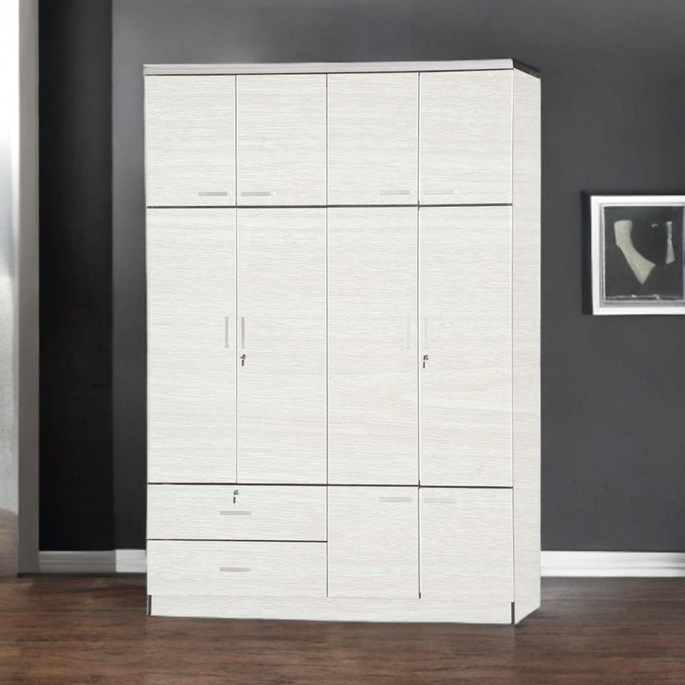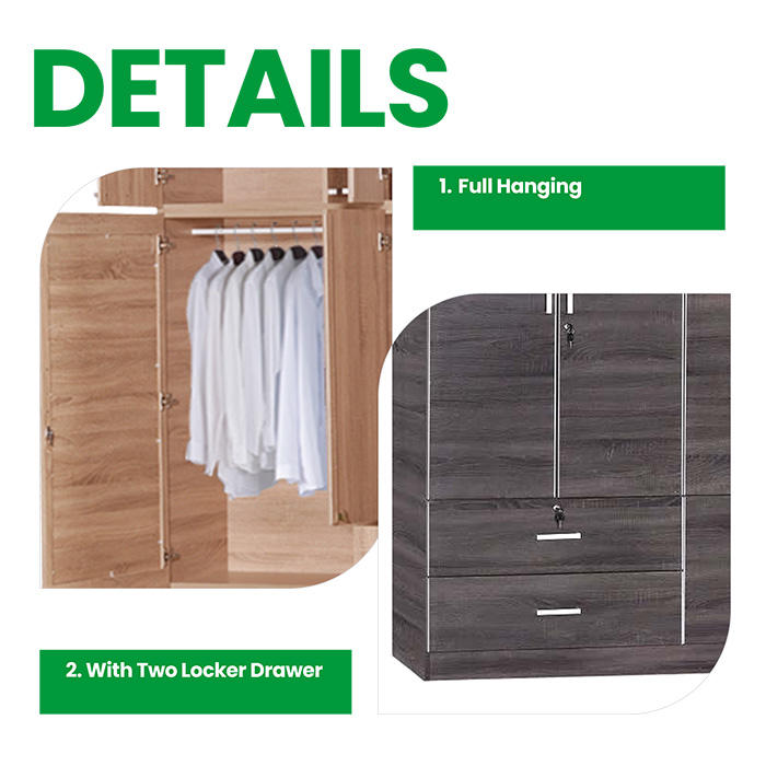 Stylish 4-Door Plywood Wardrobe with Drawers Mirror and Hanging for Home or Hotel Functional Furniture for Apartment Bedrooms