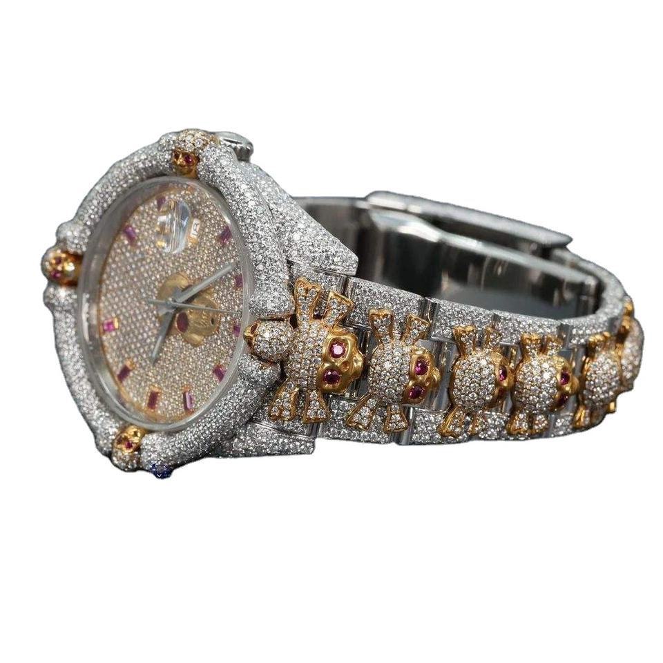 Stylish 40mm Men's Luxury Watch White Yellow Gold Plated Custom Skull VVS Moissanite Fully Iced Unique Hip Hop Leather Business