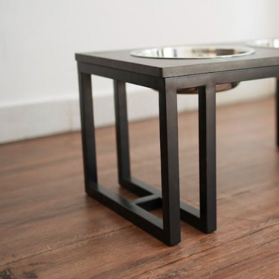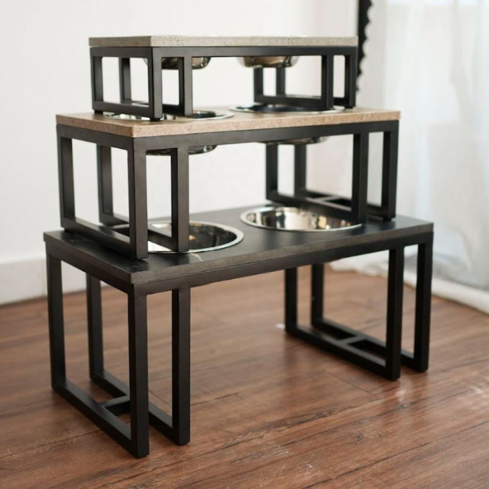 Stylish Acacia Wood Top & Stainless Steel Pet Bowl Stand 22.4x12x10.6 with Elevated Design Sturdy Metal Legs for Dogs & Cats