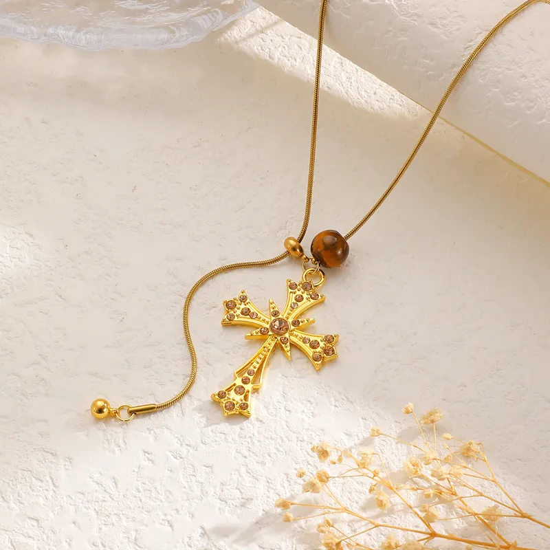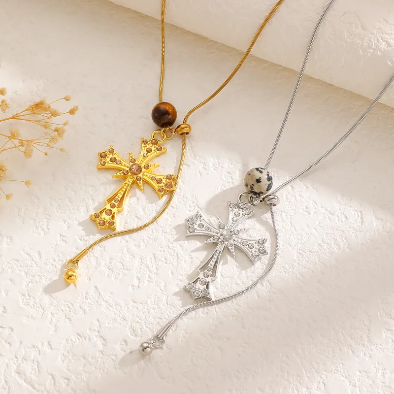 Stylish Adjustable Cross Necklace for Women with High Quality Gold and Silver 304 Stainless Steel Chain Pendant Accessories