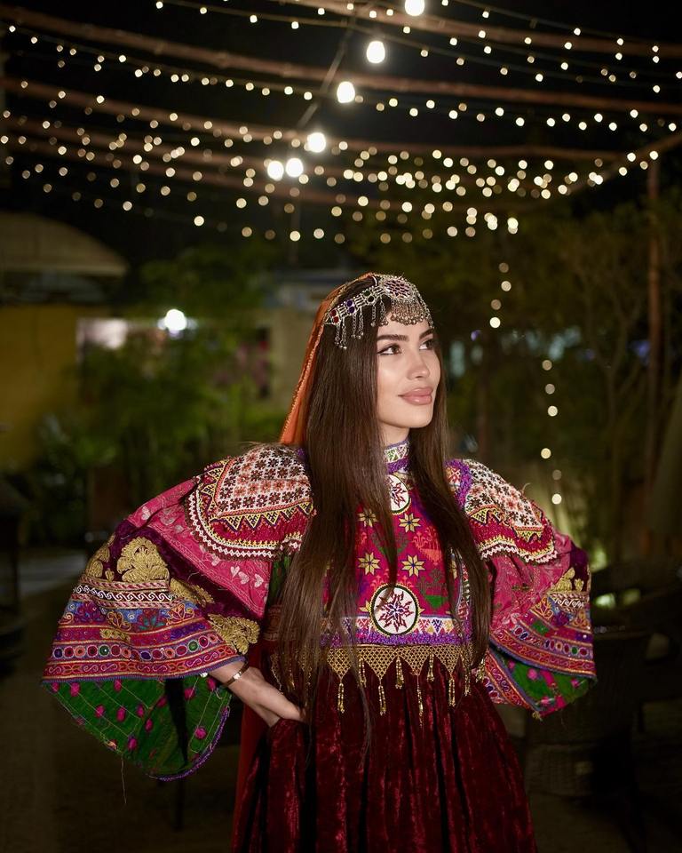 Stylish Vintage Afghan Women Handcrafted Embellished Cultural Attire Exquisite Thread Embroidery Chiffon Fabric Long Sleeve for