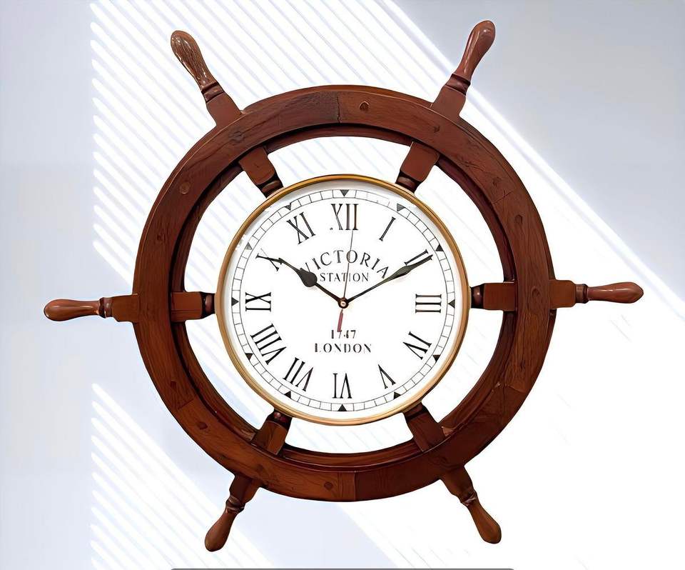 Stylish Antique Nautical Wooden Ship Wheel Wall Clock Durable Eco-Friendly Home Decor Innovative Steering Wheel Design for Gift