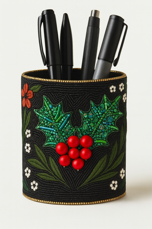 Stylish Artisan Christmas Beaded Pen Holder Collection Handmade Embroidery Desk Organizer Festive Santa Tree Series Stationery