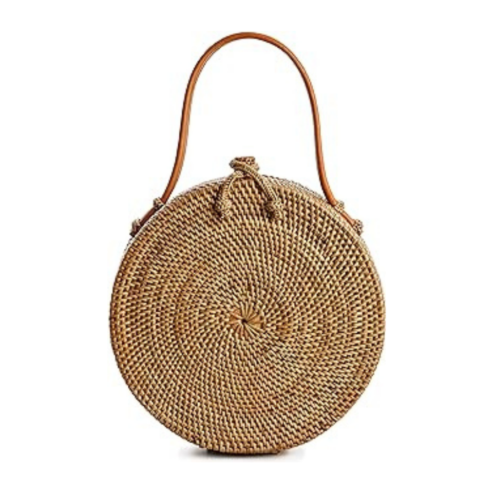 Stylish Beach Rattan Bag - Round Cylinder Handwoven Bag with Leather Strap for Women- Bohemian Woven Rattan Purse