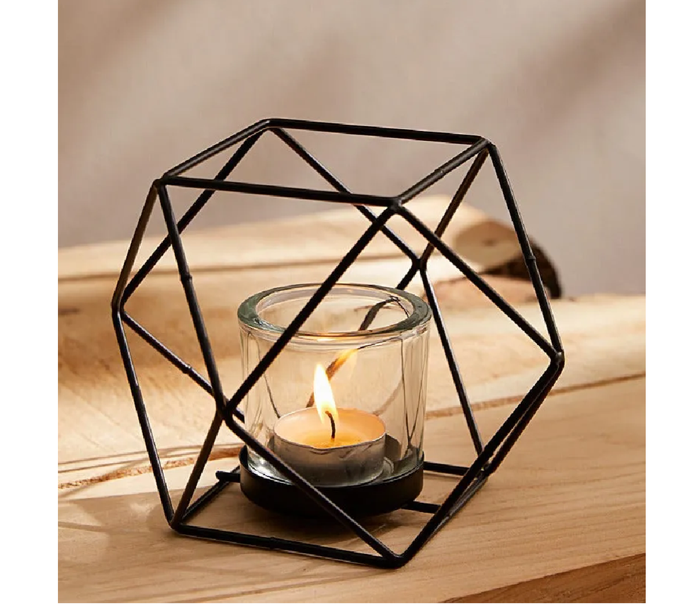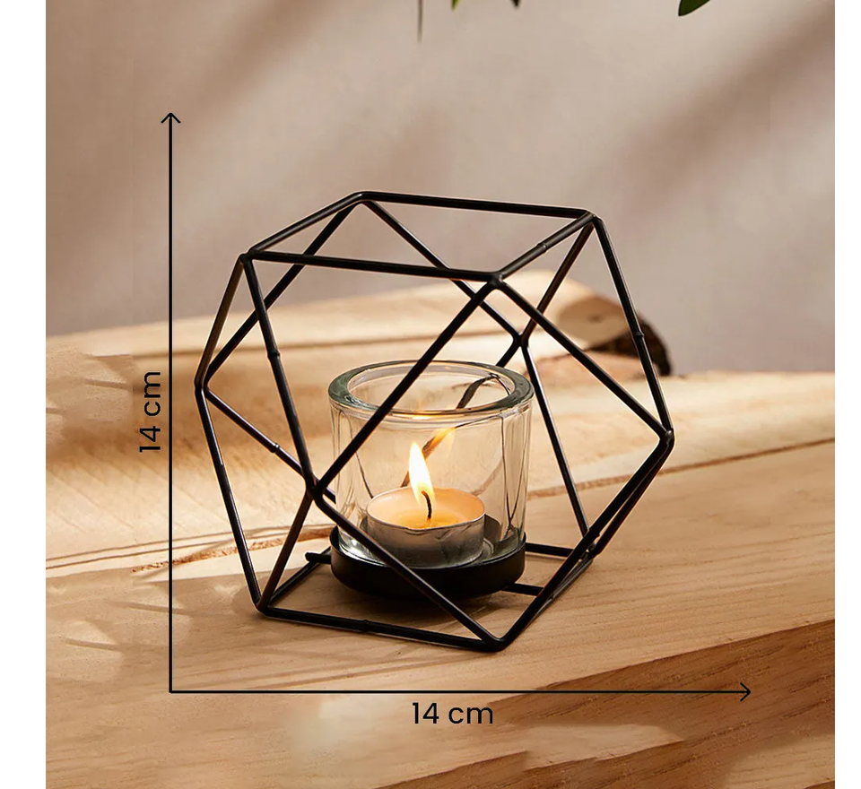 Stylish Black Metal Tea Light Candle Holder with Elegant Lantern Stand Geometric Round Glass for Home Decoration for Christmas