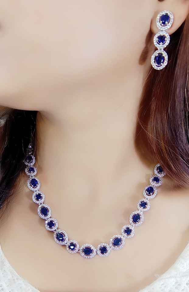 Stylish Blue Silver-Plated AD Stone Studded Indian Jewellery Set for Wedding Party & Engagement Gift Handmade Bulk Product